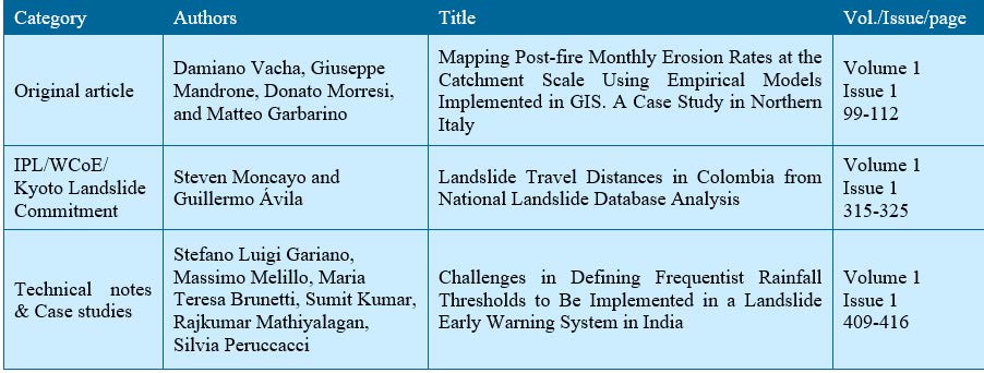 The Kyoto Landslide Commitment 2020 secretariat examined potential new mechanisms/infrastructures to develop the KLC2020. As a result, a new open access, free-of-charge publication focusing on practical applications of landslide research and technology for the benefit of society was planned.