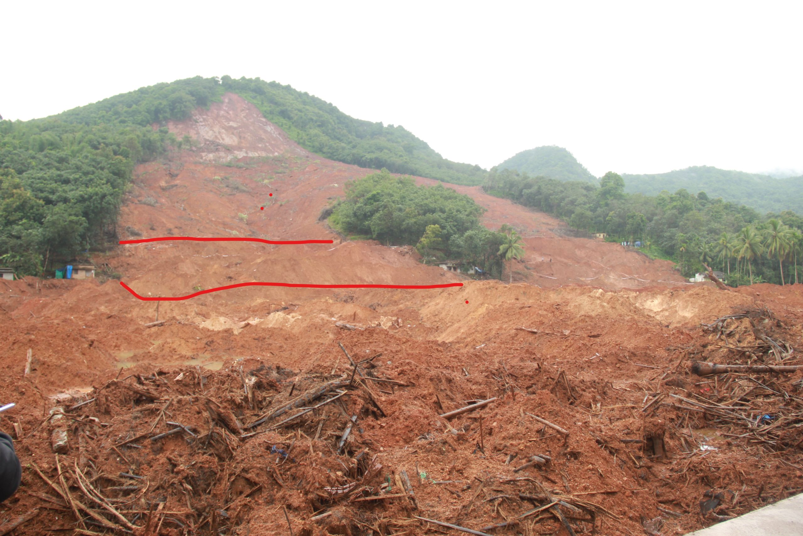 Month of August experienced heavy rainfall on the Western Ghat mountain ranges of southern India in 2019 with exceptionally heavy rainfall i.e. 400% over the normal average during 5 cumulative days resulting in the devastating landslide on 8th August 2019. It was difficult to estimate the actual loss however 69 casualties, 39 completely damaged houses along with roads, utilities and other infrastructure damages were recorded during our survey. The children and adults who managed to escape their death were completely traumatised and were unable to talk. Through field and desk geoscientific investigation it was found that the mismanagement of land use, unscientific slope modification, disruption of free flow of drainage, added with huge amounts of water due to heavy rainfall leading to supersaturation of highly weathered and structurally disposed debris material overlying Archaean bedrock and toe erosion due to flooded river resulted in this landslide. Although the slide happened in a rapid way but precursory signature as cracking and rumbling sound was heard before the actual event. However people were trapped and could not go away as their escape root was flooded. The landslide happened in the northern trifurcated downslope segments as the three 1st order drainage courses carried the discharge of debris and water. The communities living in high hazard prone areas need to be prepared as a resilient community by empowering them with deployment of multi-scale early warning and risk management systems.